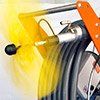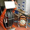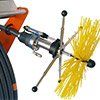 For a distance of 35 metres with various brush heads attached to the rotating arm as they pass through the ducting a bio-degradable chemical foam is released over the brush heads to agitate and remove the waste products this is then drawn into a wet vac system leaving the ducting free of grease products.